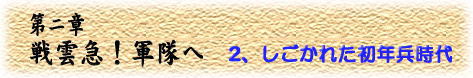 | そのことはさておき、日の丸の旗の波に送られて入営しだ岡本は、早々に厳しい軍隊生活を経験するので |