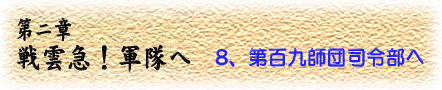 | 昭和19年7月、第11期が卒業するという直前に「第百九師団司令部に出向を命ず」という命令を受けた。 |