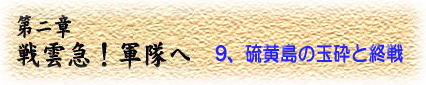 | しかしなんとしても、制海、制空権が敵の手にあり独立無援なので抵抗にも限りがある。栗林師団長を |